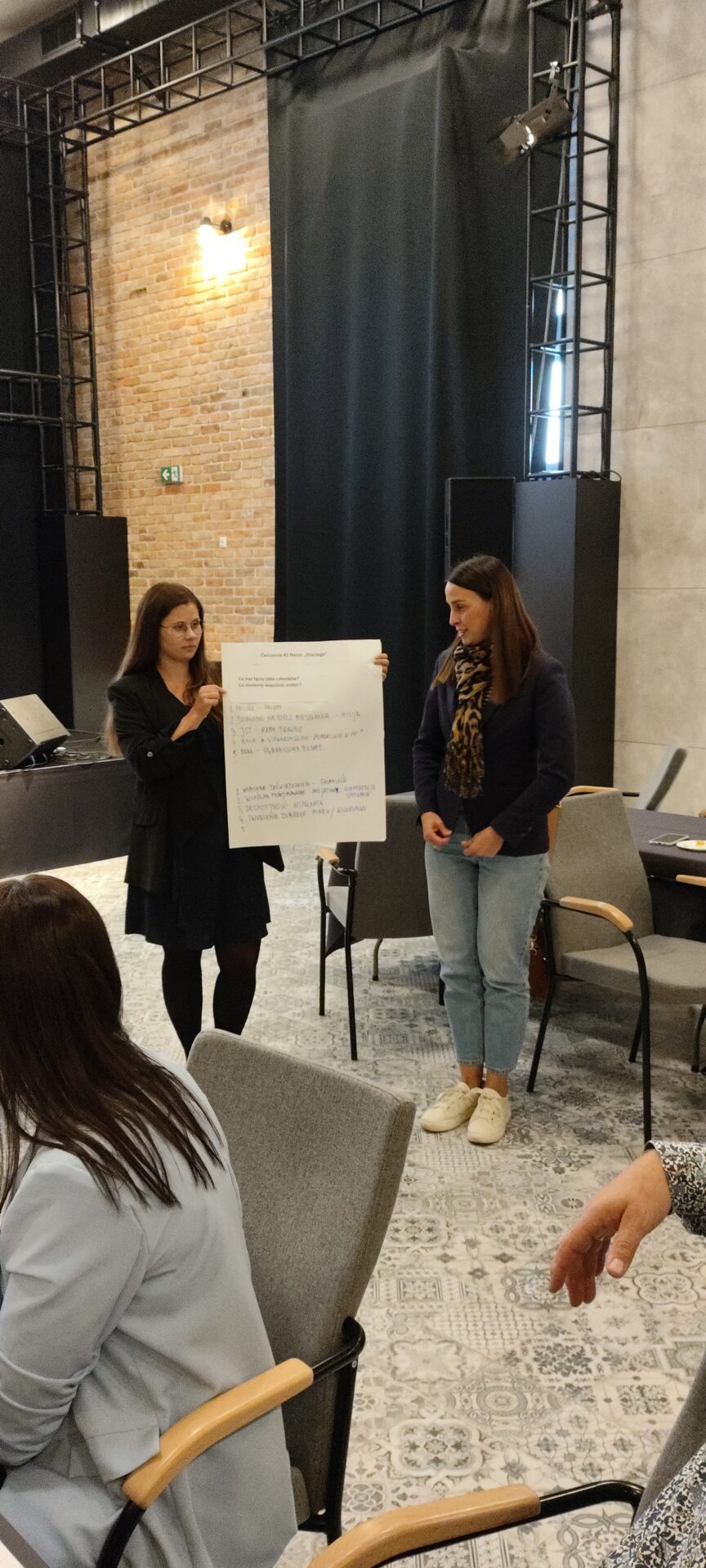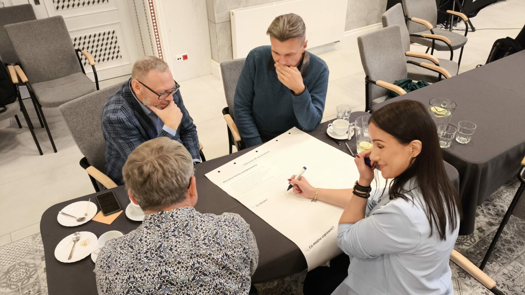 Pracowaliśmy z zastosowaniem koncepcji „Złotego Kręgu” Simona Sineka – od DLACZEGO, przez JAK, aż po CO. Aby praca była bardziej efektywna podzieliliśmy uczestników spotkania na trzy grupy: